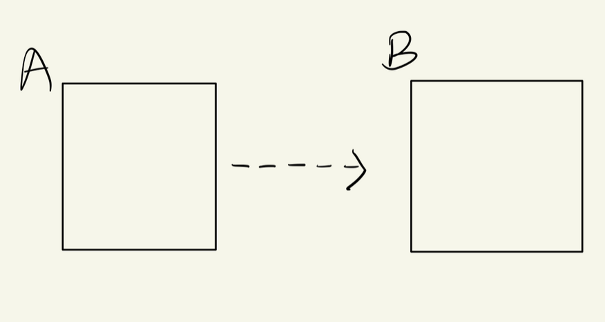 현재는 A가 B에 의존하고 있다는 것을 나타냅니다.