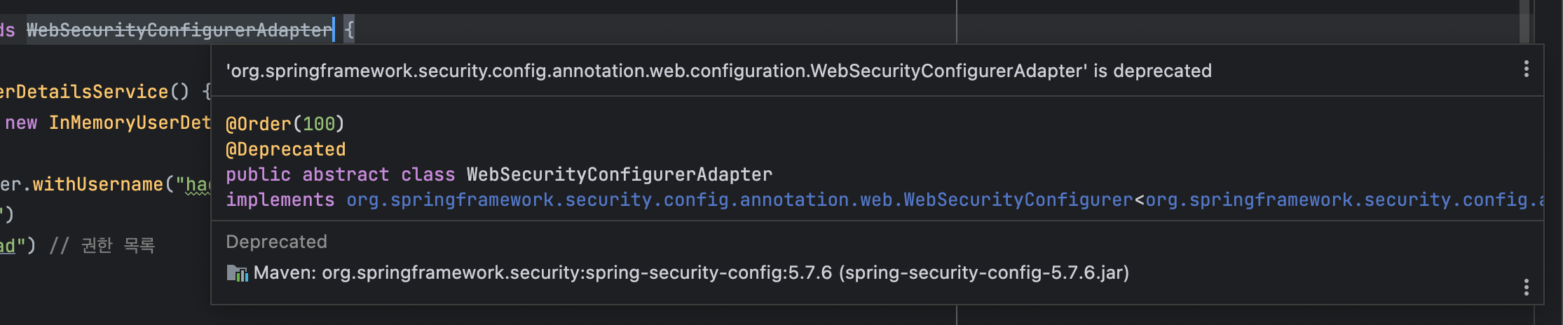 이제 UserDatailsService 를 InMememoryDetailsManager 를 사용해서 구현해보도록 하겠습니다.